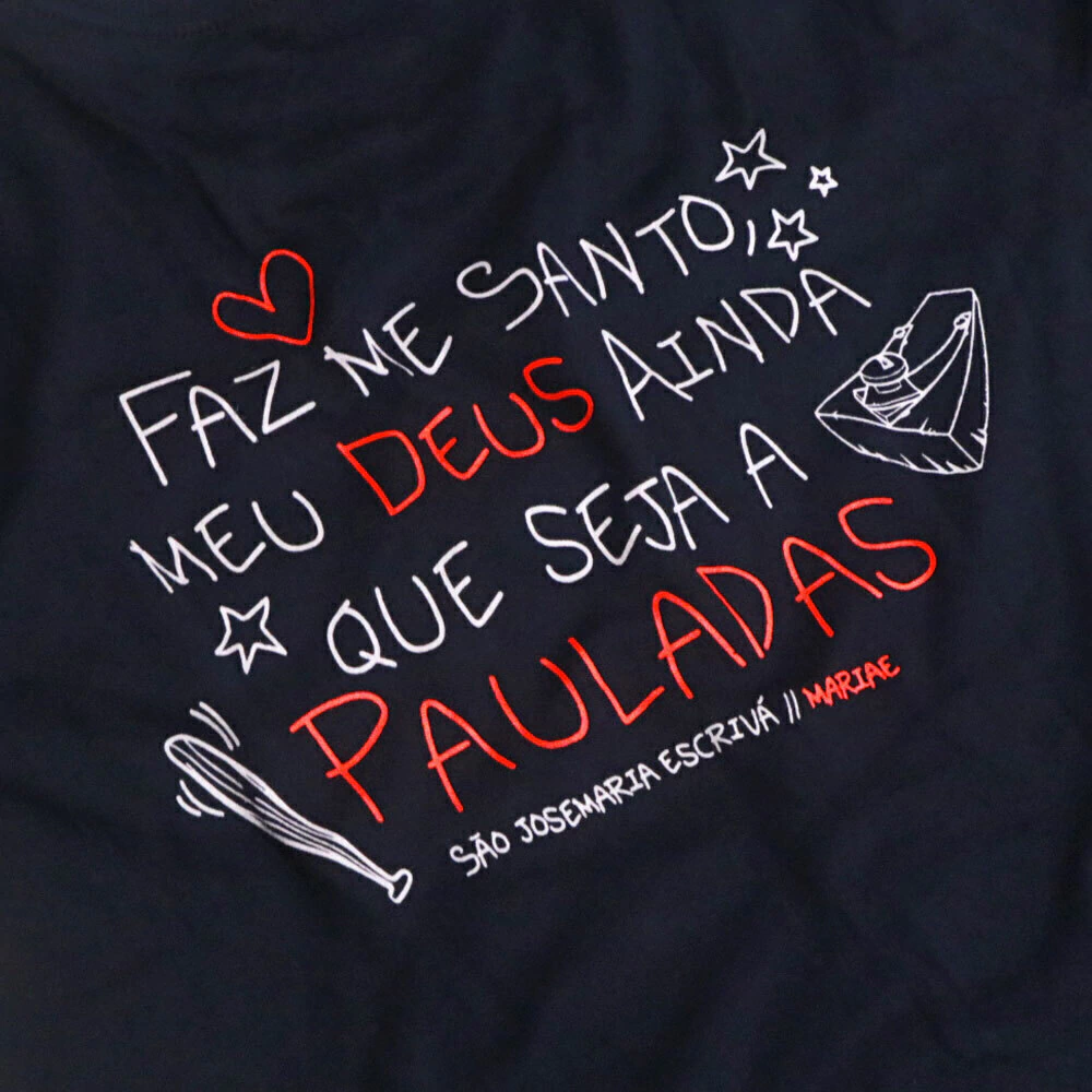 Baby Look faz me Santo - 100% Algodão e Malha Supreme 30.1 - Azul Marinho
